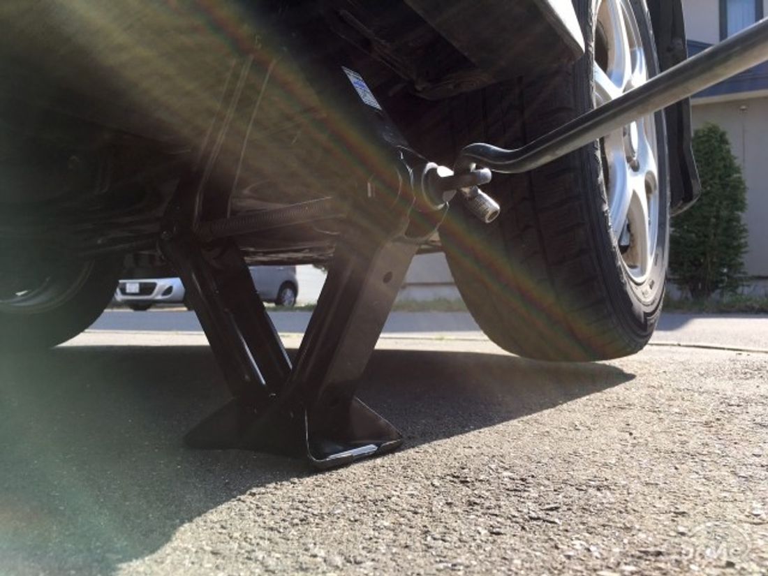 タイヤ交換の安全なやり方 車載ジャッキは使い方を間違うと倒れる