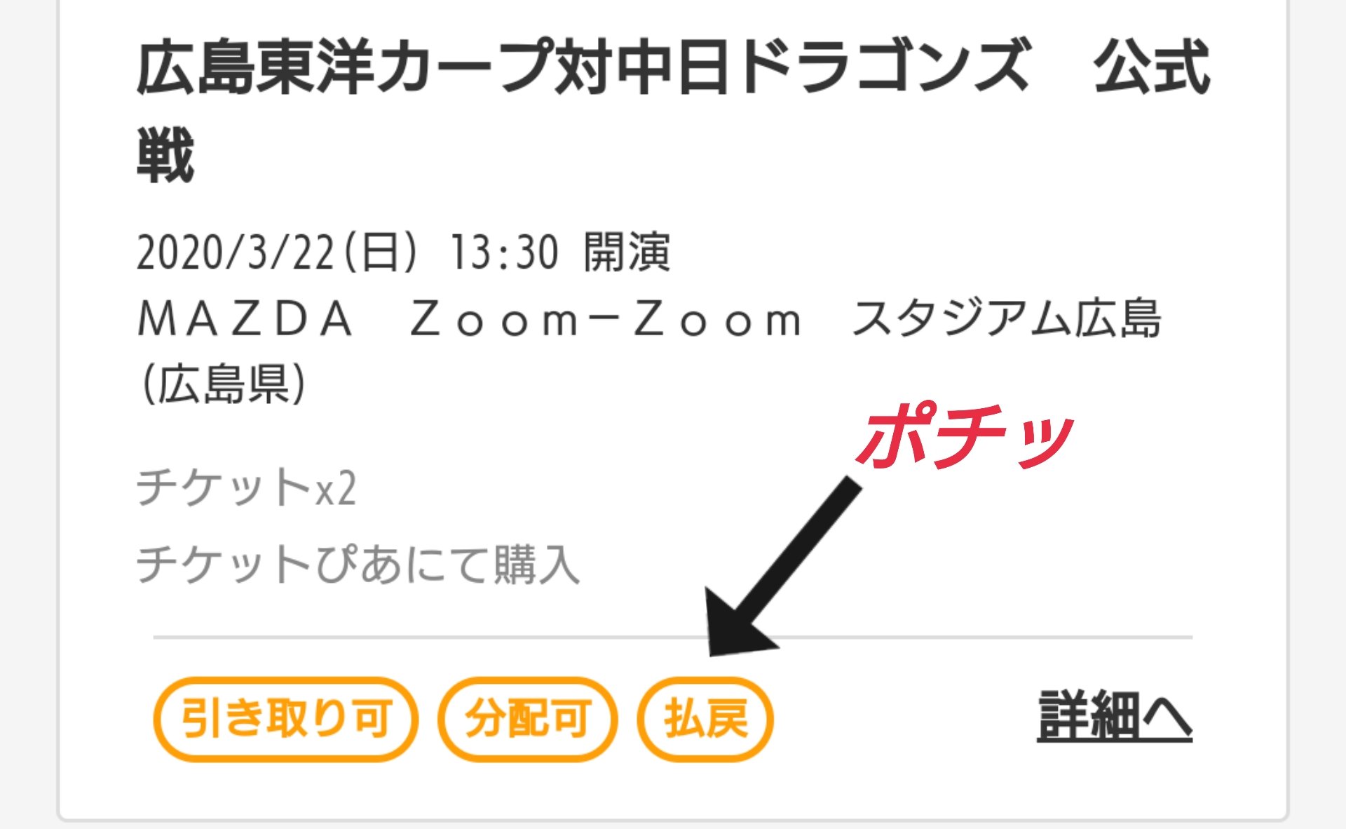 ナカサチ V Twitter チケットぴあで当選していたカープ公式戦チケット 発券せずにcloakに入れたままなら手続き簡単でした 払戻ボタンを押して 口座番号入れるだけ あぁ せっかく当たったのに悲しい 4 4と4 15も チケットあるのにぃ プロ野球チケット払戻