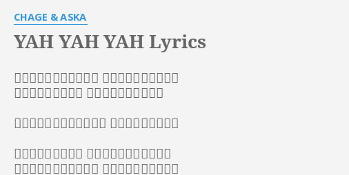 Yah Yah Yah 歌詞 Chage And Aska ふりがな付 歌詞検索サイト Utaten