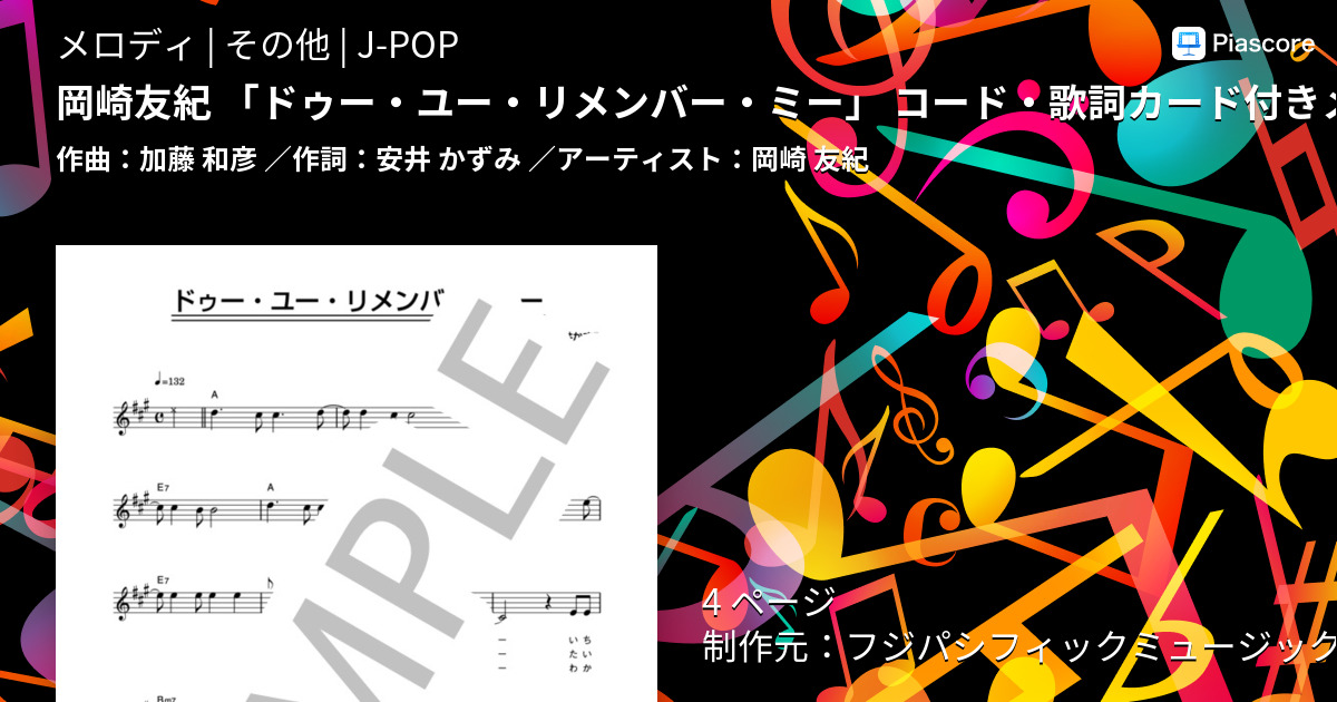楽譜 岡崎友紀 ドゥー ユー リメンバー ミー コード 歌詞カード付きメロディ譜 岡崎 友紀 メロディ その他 Piascore 楽譜ストア