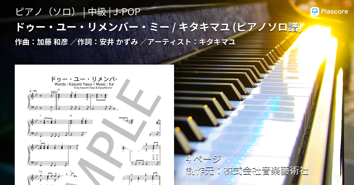 楽譜 ドゥー ユー リメンバー ミー キタキマユ ピアノソロ譜 キタキマユ ピアノソロ 中級 Piascore 楽譜ストア
