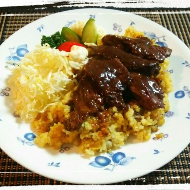 ク イ ズ の 答 え 合 わ せ ドライカレーで味付けしたご飯にハラミ肉を乗せ デミグラスソースをかけた 北海道のご当地グルメといえば